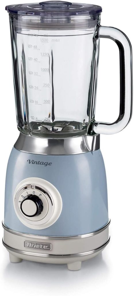 Ariete 583, Liquidificador Vintage Azul, Copo de Vidro 1.5 L, 4 Lâminas de Aço Inoxidável, 4 Velocidades + Pulso, 1000 Wats - 220V