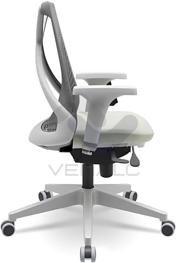 Ajustes Ergonômicos: Possui mecanismo slider, braços com ajuste de altura, pistão a gás e ajuste de inclinação e altura do encosto e da profundidade do assento.
