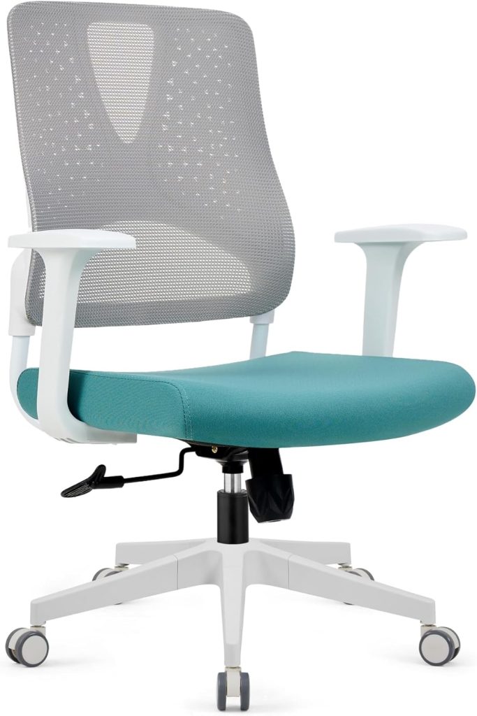 Transforme seu espaço de trabalho com esta cadeira de escritório ergonômica versátil, disponível em preto sofisticado ou turquesa refrescante. A parte traseira de malha respirável oferece excelente ventilação enquanto oferece suporte lombar confiável durante longas sessões de trabalho. Este design no meio das costas atinge o equilíbrio perfeito entre conforto e funcionalidade, com braços ajustáveis que ajudam a manter a postura adequada. A base giratória de 360 graus da cadeira montada em rodízios suaves permite mobilidade e posicionamento sem esforço. A almofada de assento de pelúcia garante conforto duradouro durante todo o dia de trabalho. Construída com durabilidade em mente, esta cadeira combina estética moderna com recursos práticos como ajuste de altura para acomodar várias configurações de mesa. O design contemporâneo combina perfeitamente com qualquer ambiente de escritório, seja em casa ou em um ambiente profissional. A estrutura resistente suporta o uso diário enquanto mantém sua aparência elegante. Perfeita para tarefas que variam de trabalho focado no computador a reuniões casuais, esta cadeira oferece o conforto e o suporte necessários para dias de trabalho produtivos.