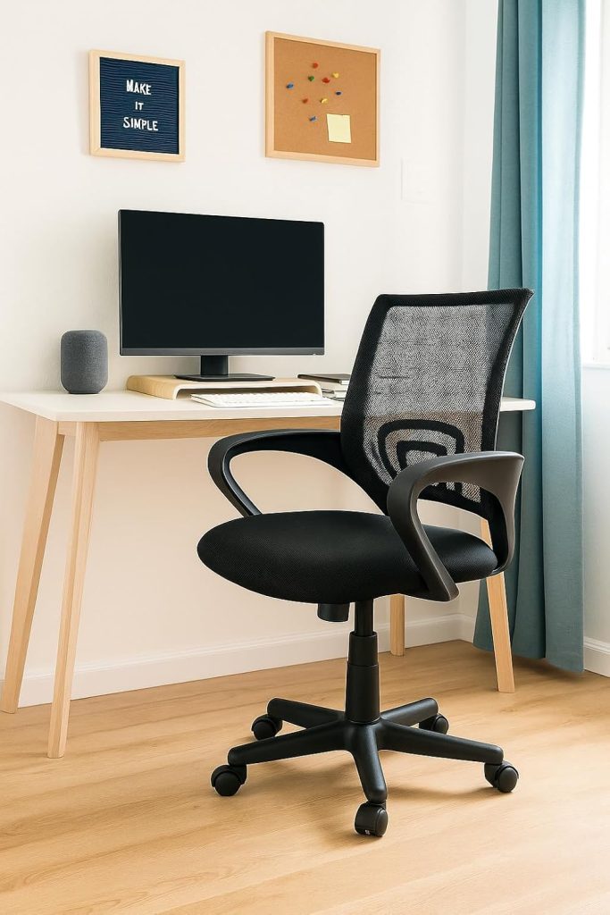 DESIGN ERGONÔMICO: Encosto em tela mesh respirável com suporte lombar integrado e assento acolchoado para maior conforto durante longas horas de trabalho