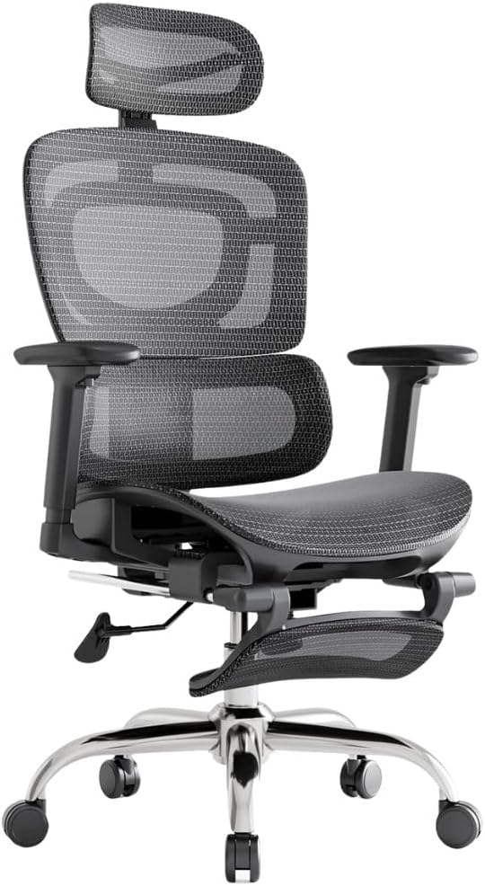 Cadeira De Escritório Ergonômica Mônaco Bt07 Luvinco Malha Respirável Com Suporte Lombar Adaptável Apoio Para Pés Retrátil Encosto Ajustável Seis Posições Suporta 200kg