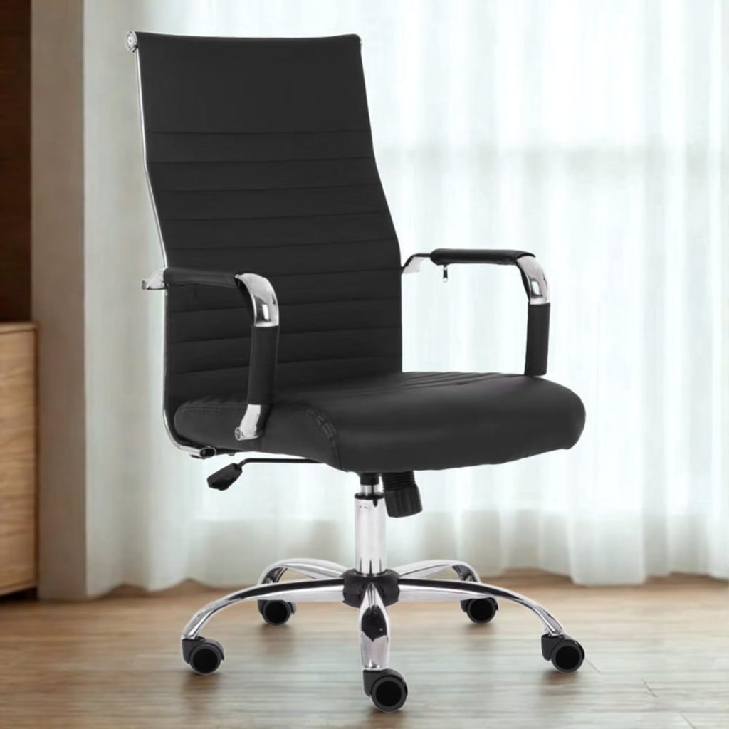 ✅ DESIGN EXCLUSIVO: Cadeira presidente com encosto alto de 59,5cm e assento amplo de 48cm de largura, proporcionando máximo conforto durante o uso prolongado