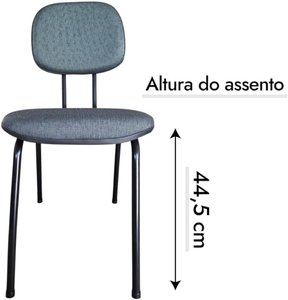 A cadeira é enviada montada, pronta para uso. O revestimento em tecido Jserrano facilita a limpeza com pano úmido, exigindo pouca manutenção diária. Sua estrutura firme não exige ajustes ou regulagens.