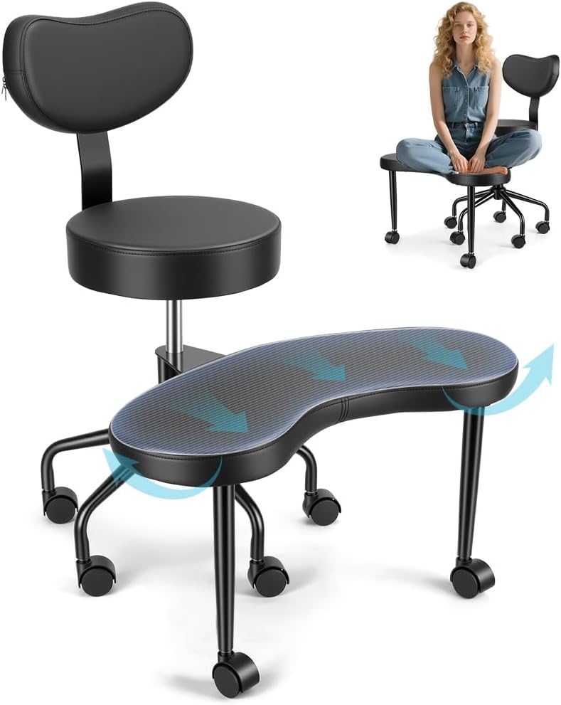 Cadeira de Meditação Ergonômica, Cadeira de Escritório Cruzada, Cadeiras de Meditação para Ioga, Altura Ajustável e Rotação de 360° para Meditaçãos, Cadeiras Versátil de Joelhos para Casa e Escritório