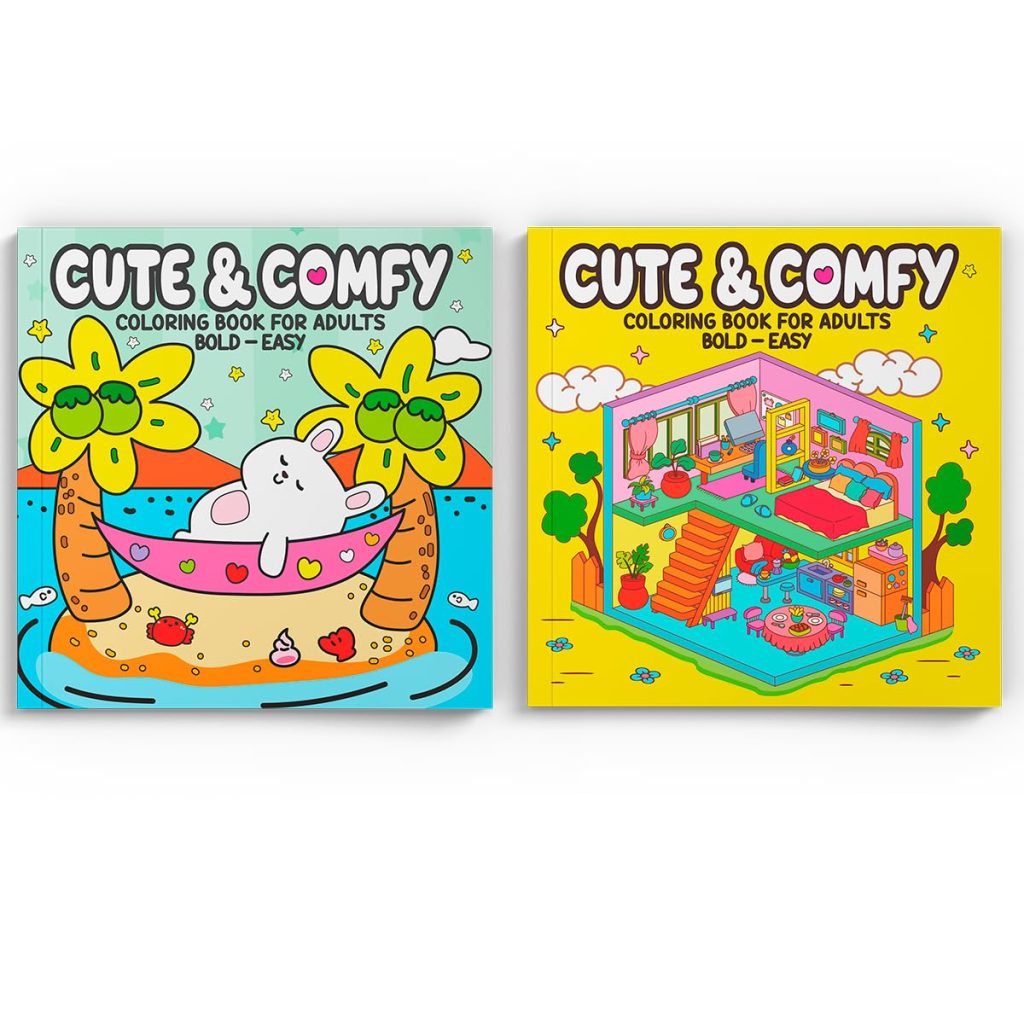 Coleção Cute & Comfy Coloring Book for Adults - Bold Easy - Kit com 2 Livros de Colorir Adulto